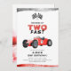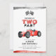 Um convite de aniversário divertido e moderno para o seu pequeno piloto! Crescer duas vezes mais rápido é projetado para uma celebração de segundos aniversários. Design apresenta um fundo branco clássico com as tradicionais cores de corrida vermelho e traseiro. Ilustrações em aquarela de um carro de corrida com o número dois, e bandeiras com um modelo simples que é muito fácil de personalizar.