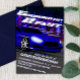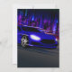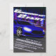 Coloque os motores para funcionar e corra até a linha de chegada para celebrar o aniversário do seu filho. Este convite único foi desenhado digitalmente para ilustrar um carro esportivo muito rápido em um concurso de corrida noturna na rua sem que ninguém consiga alcançar