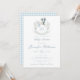 Experimente a sofisticação do eterno com este elegante convite de chá para o bebê, criado no ápice, com um encantador bebê carregando de cegos, em uma crista fofa e um padrão de gingham azul de bebê no fundo. Perfeito para elegantes celebrações clássicas de bebês.