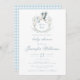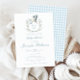Experimente a sofisticação do eterno com este elegante convite de chá para o bebê, criado no ápice, com um encantador bebê carregando de cegos, em uma crista fofa e um padrão de gingham azul de bebê no fundo. Perfeito para elegantes celebrações clássicas de bebês.