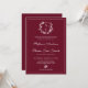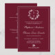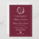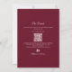 Crachá de monograma botânico convite de casamento clássico borgonha com código QR e mais informações detalhadas no verso.