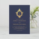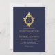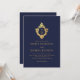 Convites Crest Monograma Antigo Azul Marinho Dourado Falso