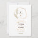 Convite de casamento com monograma de cumeeira botânica elegante dourado Convite de casamento minimalista dourado falso e branco, com suas iniciais monogramadas emolduradas por crista elegante e folhas botânicas ilustradas à mão no topo, os detalhes do seu evento são mostrados abaixo em letra moderna e tipografia clássica. Simples e luxuoso. Ótimo para casamento clássico moderno, casamento formal simples, casamento elegante no jardim botânico.
