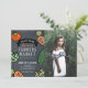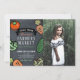 Este convite para fotos de aniversário chic e fofo apresenta um fundo preto de quadro negro com vegetais como tomate, cenoura, repolho e pepino. O verso apresenta um fundo branco com padrões de verificação de búfalos/gingham pretos. Personalize para suas necessidades. Você pode encontrar produtos correspondentes na minha loja.