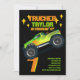 Diversão e cor brilhante do caminhão Monster recebeu o convite de aniversário em cor verde limão negra laranja e amarela (não neon real). Perfeito para garotos ou garotas que amam caminhões monstros. Para suprimentos de partes correspondentes, veja a coleção anexada.