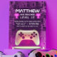 Este moderno Neon Video Game Controller Kids Teen design apresenta um controlador de jogos branco e troféus com um fundo de borda do circuito do computador. Esta design é perfeita para a festa de aniversário temática de um videogame infantil. Este design serve a qualquer sexo ou idade. Você pode personalizar todos os detalhes do seu evento. Veja toda a coleção correspondente!