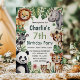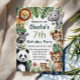 Este design de convite de aniversário da selva de aquarela das crianças modernas inclui adoráveis bichos de aquarela como leões, hipopótamos, zebras, chitas, tigres, ursos panda, e mais Há alguma folhagem tropical verde por trás dos animais. No centro do convite, há espaço para adicionar suas informações em uma fonte decorativa e fácil de ler.