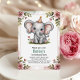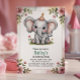 Celebre o primeiro aniversario da sua garotinha com este adorável convite de aniversário de elefante pastel! Perfeito para as festas de aniversário infantis e infantis, esta design apresenta um elefante giro, assim como flores cor-de-rosa e borda aquarela — tudo em cores suaves e femininas. Este convite diz "primeiro aniversario", mas você pode facilmente mudar o ano de aniversário para o que quiser. Este convite de aniversário editável é fácil de personalizar com os detalhes da sua festa — basta clicar em "Personalizar" para atualizar o nome, a idade, a data, a hora, o ano de aniversário e a localização. Aproveite!