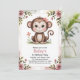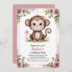 Celebre o primeiro aniversario da sua garotinha com este adorável convite de aniversário de macacos pastel! Perfeito para as festas de aniversário infantis e infantis, esta design apresenta um macaco fofo assim como flores cor-de-rosa e uma elegante borda de aquarela — tudo em cores suaves e femininas. Este convite diz "primeiro aniversario", mas você pode facilmente mudar o ano de aniversário para o que quiser. Este convite de aniversário editável é fácil de personalizar com os detalhes da sua festa — basta clicar em "Personalizar" para atualizar o nome, a idade, a data, a hora, o ano de aniversário e a localização. Aproveite!