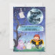 Adicione diversão ao seu evento de Halloween com nosso charmoso e personalizável convite de Tronco ou Tratar! Apresentando um design de Halloween fofo, este convite mostra um menino em uma capa amarela, acompanhada por fantasmas amigáveis e uma bela árvore de outono. Uma lua grande de cheio adiciona um toque mágico a esta cena adorável. Perfeito para crianças e adultos, nosso convite é ideal para eventos de igreja, reuniões de comunidades, festividades de vizinhança e muito mais