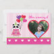 Convite para fotos de festas de aniversário bonitas e divertidas. Perfeito para celebrar uma festa em torno do Dia de os namorados. Possui um urso panda vestindo um chapéu de festa e segurando balões com forma de coração. A foto é colocada dentro forma de coração. design cor-de-rosa, vermelha, verde e roxa. Adicione seu próprio texto e você está definido. Os detalhes do evento estão no verso.