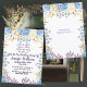 Seja um menino ou uma menina, comemore o aniversário do seu Pequeno Flor Bud com este suave, suave, pastel Cores de Festa de aniversário Azul Convidado. A design apresenta flores azuis de hydrangea e não me esqueçam de florescências e botões. Se você gosta deste trabalho de arte, você pode visitar minha loja floral_Color para obter itens correspondentes/semelhantes. Ligação: https://www.zazzle.com/store/floral_colors