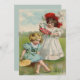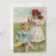 Essas meninas estão fazendo uma pausa para encharcar seus pés quentes. Esta é uma bela ilustração do final da década de 1800, quando crianças brincavam com roupas adoráveis no jardim.
