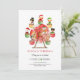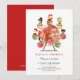 O convite de Natal de uma criança. O design de Natal festivo apresenta uma maravilha vermelha e verde de inverno, roda-gigante Ferris, com crianças vestidas em rico de Natal como papais noeis, elfo, rena, pinguim e muito mais.