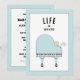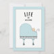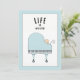 Design fofo com tema musical apresentando uma ilustração única de um piano grande azul bebê em um carrinho de bebê.