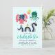 Convite de aniversário bonito e colorido para uma criança ou criança jovem com ilustrações adoráveis de uma beleza, Kraken e lula gigante tendo uma festa. Perfeito para o aniversário de uma menina ou de um menino.