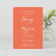 Crie o seu próprio design personalizado e os seus convites de casamento coloridos! Personalize o texto e o estilo de fonte mostrados neste convite, adicione imagens, se desejar, e altere a cor de fundo no editor de design para corresponder perfeitamente ao seu tema de casamento. Visite o Compro Orange Wedding no Zazzle para ver toda a nossa coleção de designs exclusivos!