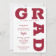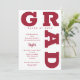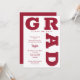 FORMANDO em negrito em curvas de letras vermelhas nas bordas desses convites de festa de formatura de fundo branco. CORRESPONDENDO a itens na nossa loja.