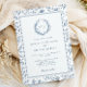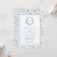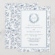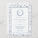 Adicione elegância atemporal ao seu dia especial com este convite de casamento inspirado em chinoiserie, apresentando uma delicada moldura de toile floral azul e crista floral com monograma.