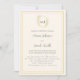 Convide os entes queridos para o seu dia especial com este convite de casamento clássico, apresentando um design de brasão atemporal com as iniciais do casal elegantemente emolduradas em dourado falso. Tons suaves de marfim se combinam lindamente com delicados acentos florais, criando uma aparência sofisticada e romântica. Perfeito para casais que buscam um estilo refinado e tradicional, este convite define o tom para uma celebração inesquecível. Totalmente personalizável com seus detalhes para um toque pessoal.