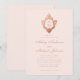 Este elegante convite de casamento em rosa bege e dourado rosa com um ar vintage tem um brasão floral vintage em folha de (faux) ouro rosa, que contém o monograma. Os nomes da noiva e do noivo são escritos em uma fonte caligráfica elegante. Todo o texto pode ser personalizado e tem uma cor semelhante à do brasão dourado rosa. O fundo é rosa bege.