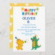 Make a splash at your boy's 6th birthday with this hilarious cartoon invitation! Featuring a dancing crocodile and hippo in party hats, this vibrant 5x7 card brings maximum fun with its rainbow "Happy Birthday" text and bright color scheme. Perfect for creating an unforgettable celebration atmosphere!