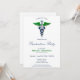 Uma interpretação moderna do símbolo clássico caduceus com uma haste e cobras azuis metálicos, asas verdes estilizadas e uma placa de vidro redondo com símbolo verde. Este design profissional e atraente é perfeito para o seu convite para a graduação para os seus amigos e familiares.