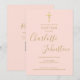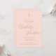 Um convite de batismo ou crisma elegante com uma assinatura de nome em letra cursiva sofisticada. Personalize com as informações especiais do seu batismo ou crisma em letras douradas elegantes sobre um fundo rosa bege e código QR e detalhes da recepção no verso. Desenhado por Thisisnotme
