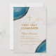 Convites Cruz Dourada do Mármaco Azul de Primeira Comunhão