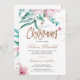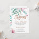 Um primavera moderno ou uma menina de verão ou um convite batizante de criança apresentando uma cor d'água, flores rosas de magnólia cor-de-rosa, folhagem verde e folhas de eucalipto e um roteiro clássico de caligrafia manuscrito. ++++++++++ É fácil personalizá-lo com seus detalhes! ++++++++ Adequado para cerimônias e recepções florais, de jardim exterior ou de quintais de Verão elegantes para recém-nascidos.