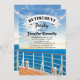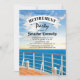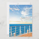 Velejar convites de festas temáticos de aposentadoria com o convés de um navio de cruzeiro, o oceano, um belo pôr do sol, e um modelo de celebração aposentado que é fácil de personalizar.
