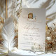 Celebrar a chegada com este charmoso convite para chás de fraldas, com um belo filhote ilustrado de leão-dormindo descansando sobre nuvens macios e fofinhas. O convite apresenta uma paleta de cor calorosa com tons de bege, castanho macio, azul claro e creme. A elegante tipografia, que combina fontes clássicas de serifa e de escrita moderna, adiciona um toque de sofisticação. Perfeito para um chá de fraldas honrando a futura mãe, este convite inclui todos os detalhes essenciais como data, hora e local, juntamente com um gentil lembrete ao RSVP.