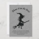 Uma bruxa assustadora voando sobre uma vassoura e o ditado divertido, culpem-na no Boos, acentua este Convite de festas de Figurino de Halloween sobre um fundo ilustrado de linhagem de cinza, fazer este convite perfeito para o Partido Adulto do Halloween.