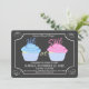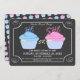 Doce cupcakes cor-de-rosa e gelo azul, ele ou ela, junte-se a nós e veja! Design com estilo de placa de quadro e cor-de-rosa, azul e amarelo para o seu novo bebê no modo como o gênero revela a festa.
