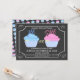 Doce cupcakes cor-de-rosa e gelo azul, ele ou ela, junte-se a nós e veja! Design com estilo de placa de quadro e cor-de-rosa, azul e amarelo para o seu novo bebê no modo como o gênero revela a festa.