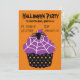 Um convite de festas adequado para uma festa temática do Halloween com um cupcake de aranha assustadora com um tema roxo, preto e laranja. Este convite é totalmente personalizável para incluir seus próprios detalhes pessoais.