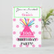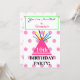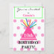 Bonito festa de aniversário para 10 anos ou outra idade. O NOME é escrito em retângulo verde da casa de dentro cor-de-rosa bonito. Chapéu de aniversário cor-de-rosa mais brilhante com tassel colorido contra bolinhas cor-de-rosa pastel em fundo branco. A parte de trás tem detalhes de eventos para personalizar na tipografia negra com fundo de pontos de rosa claro, cupcake de chocolate de glacé rosa e balões coloridos. Arte original e Design de verso de placa © TamiraZDesines