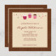 chá de panela bonito e moderno. Paleta de cores de contraste. Um quadro bolinhas faz o design destacar-se. Três cupcakes de cor rosa, castanho e creme com sotaques brancos e burros pequenos. As aspersas adicionam um toque divertido.