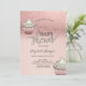 O convite para chá de fraldas bonito apresenta um rosa dourado com um chá de fraldas. Esses convites para chuveiros de bebês são facilmente personalizados para seu evento simplesmente adicionando seus detalhes.