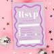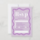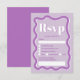 Placa rsvp de casamento ondulada com curva de lavanda roxa retrógrada, Todos os textos, nomes e cores de fundo são personalizáveis para você misturar e combinar seu casamento