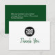 Easily personalize this dark green simple business corporate thank you card adding your company logo, photo or any image. Upload a custom background image or choose any background solid color. Create your own minimalist branded thank you cards with your corporate custom logo. A basic, professional custom thank you card template perfect to promote your business brand. With the customization tool you can easily add text, geometric shapes and images, resize elements, choose your favourite background color. Make your own design and enjoy the high quality Zazzle print of this beautiful corporate thank you cards.