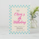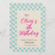 Blue checkered birthday invite with adorable pastel details. Custom cute blue gingham birthday invitation with a sweet, playful vibe.