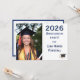 Design front features the photo you supply displayed at left against a white background. Your text is featured at right in a navy-blue text.