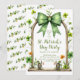An elegant St. Patrick’s Day celebration invite showcasing a plaid bow, floral clovers, and illustrated gnomes. Completely customizable, with a printed clover pattern on the back for a cohesive finish.
