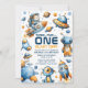 With a playful mix of bue and orange soft pastel tones, this gender-neutral invitation is perfect for both boys and girls who dream of cosmic adventures. The cheerful “3…2…1… Blast Off!” theme adds excitement and sets the tone for an unforgettable space-themed first birthday celebration.