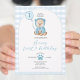 Convites Cute Boy Blue Gingham Balão Beary Primeiro Anivers