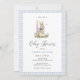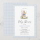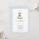 Cute hand painted watercolor Bunny Baby boy Baby Shower invitation with blue pinstripe border.
