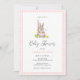 Cute hand painted watercolor Bunny Baby girl Baby Shower invitation with pink gingham.