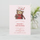 A birthday invitation with a cute drawing of a little kitten poking its head out of a gift box.