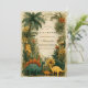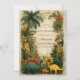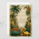 Step into a lush prehistoric paradise with this vintage-style dinosaur design. Featuring palm trees, ferns, and gentle dinosaurs in warm earthy tones, it’s perfect for a baby shower with adventure and charm. A timeless blend of tropical greenery and whimsical Jurassic nostalgia.